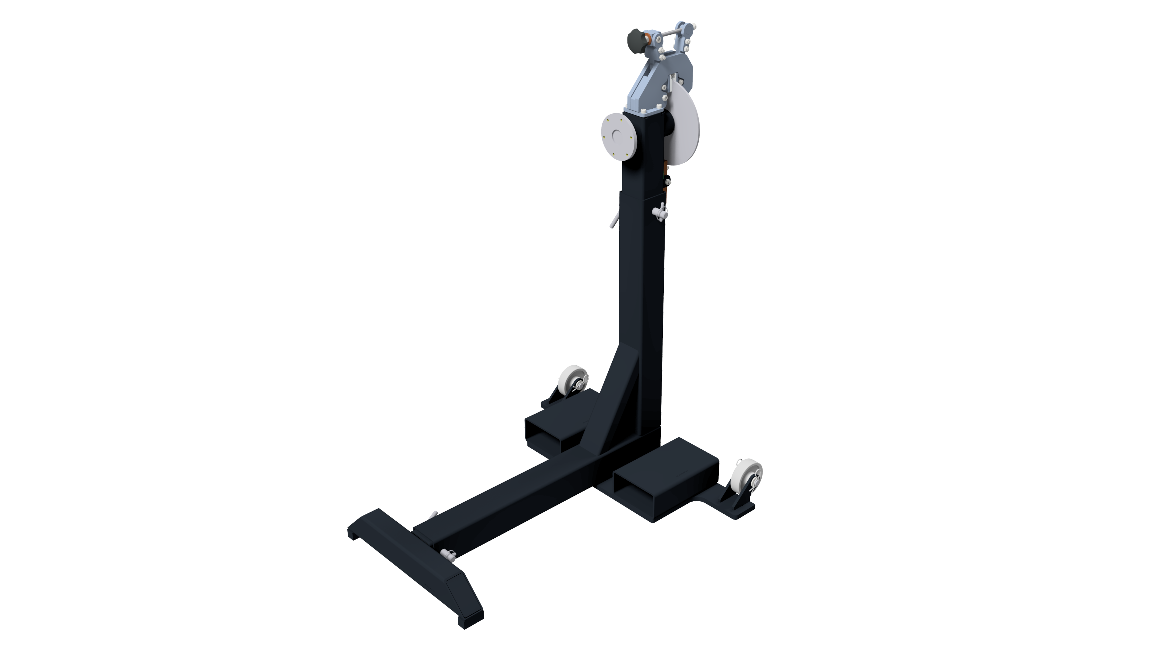 Unser hochwertiger Drehpositionierer wurde speziell für die Aufnahme und Positionierung von Vorrichtungen entwickelt. Die robuste Konstruktion ermöglicht das präzise Drehen um die horizontale Achse, wodurch eine optimale Bearbeitung und Handhabung gewährleistet wird. Dank der integrierten Höhenverstellung kann der Arbeitsbereich individuell an die Bedürfnisse des Bedieners angepasst werden, was eine ergonomische Arbeitsweise unterstützt und Ermüdung reduziert. Ein Rohrrahmen dient in dieser Variante als Fuß und ermöglicht eine Verstellung im Bezug auf den Schwerpunkt der Vorrichtung. Darüberhinaus bietet er mit Staplertaschen und integrierten Rollen eine hohe Mobilität.